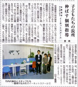 新年明けましておめでとうございます。 2016年は皆様のご協力のおかげで、放課後等デイサービス「イーネットスクール」を開設し、2017年を迎える事ができました。 ご協力いただいた多くの方々に感謝致します。 本年もお子さん […]